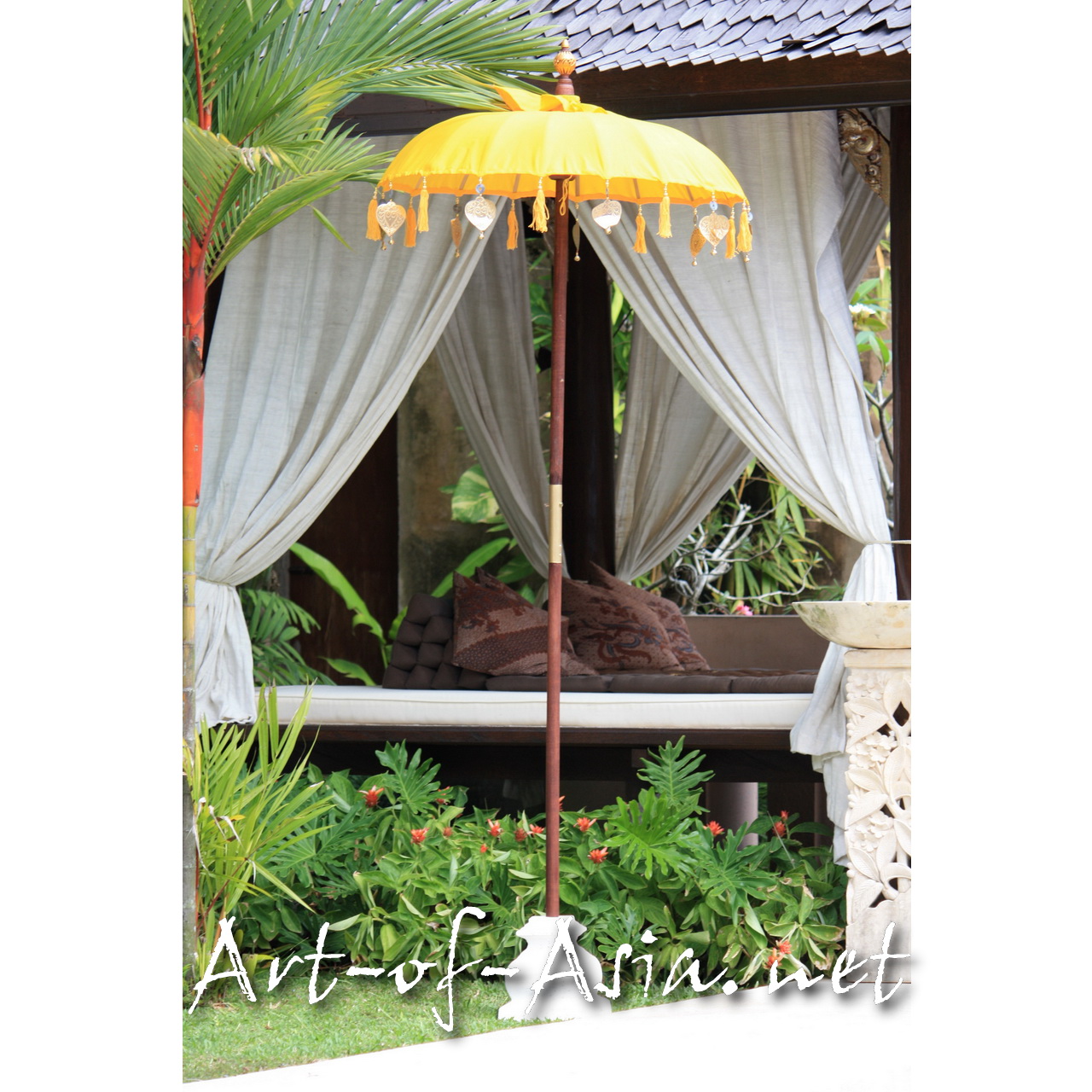 Unser Bali-Tempelschirm - eine Kostbarkeit, die viel edler als jeder Standard-Hightech-Schirm ist. Schützen Sie Ihren Schirm deshalb bitte vor zu starkem Wind und Regen - so werden Sie sehr lange Freude an diesem Kunstwerk haben.
